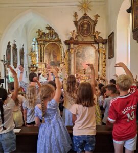 Am Freitag, 5.9.25 machten sich alle Schulkinder mit ihren LehrerInnen und auch viele Eltern auf den Weg zum Schuleröffnungsgottesdienst in die Kirche nach Baumgarten. Mit schwungvollen Liedern und einer schönen Geschichte über einen Leuchtturm, der immer da ist und für Sicherheit sorgt, begrüßten wir das neue Schuljahr. Mit einem „Spezialsegen“ für unsere „Erstklassler“ endete unser Schulgottesdienst und wir ließen die erste Schulwoche im Schulgarten bei herrlichem Wetter ausklingen.