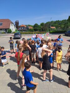 Bei strahlendem Sonnenschein fand am Freitag, dem 19. September 25 unser „OLYMPISCHES SPORTFEST“ statt. Nach dem Entzünden unseres olympischen Feuers konnten die Kinder, unterstützt von ihren Gruppenbetreuern, an verschiedenen Stationen ihr sportliches Können zeigen. Alle hatten viel Spaß und brachten super sportliche Leistungen. Am Montag wurden in der Aula die besten Sportler mit Medaillen und Pokalen belohnt. Alle Sportler bekamen eine Urkunde und eine kleine Belohnung. Vielen Dank an die „Trainer-Eltern“ und „Trainer-Großeltern“, die unsere Schülerinnen und Schüler durch diesen sportlichen Tag begleitet haben.