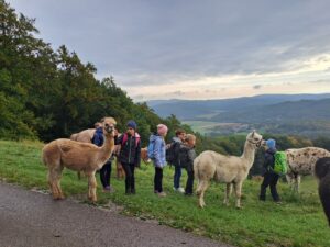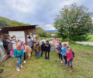 Beim dritten Anlauf hat es geklappt!! Die zwei dritten Klassen unternahmen am 10. Oktober eine Wanderung zur Buchbergwarte. Begleitet wurden die Kinder von 6 Lamas. Es war eine tolle Erfahrung die Tiere zu führen und einiges über die Lamas zu erfahren.