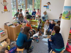 Am 5. April besuchten wir die Bibliothek . Trotz des starken Windes gingen wir zu Fuß nach Sieghartskirchen. Wir wurden sehr herzlich von Frau Kienast und Frau Probst empfangen und bekamen eine Führung durch alle Abteilungen der Bibliothek. Es wurden 2 Bücher vorgelesen und jedes Kind durfte selbst ein Buch für zu Hause ausleihen. Zum Schluss bastelten wir noch Monsterlesezeichen. Nach einer Pause im Gemeindepark am Spielplatz fuhren wir mit dem Bus zurück nach Hause.