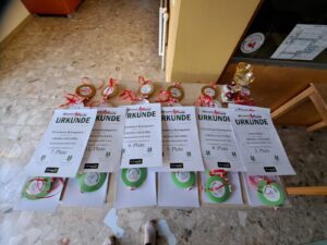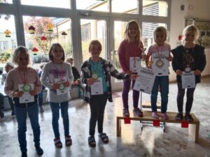 Insgesamt waren über 700 Kinder am Start. Natürlich wurden alle Teilnehmer groß gefeiert! Bei der Siegerehrung am 7. Oktober in der Schule gab es für alle Urkunden und Medaillen. Ganz besonders stolz sind wir auf die Mädchen der 2. Klassen, welche in ihrer Kategorie den 1. Platz unter allen teilnehmenden Schulen belegten und einen Pokal mitbrachten. Brrrrravo!