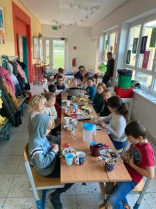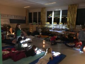 Am 24. November 2022 trafen sich die Drachenkinder der 2b abends nochmals mit Pyjama, Schlafsack und Polster in der Schule. Aufgeregt suchten sich gleich alle einen Platz in der Klasse. Doch vor dem Schlafengehen gab es noch ein Weltreisespiel und eine Schatzsuche im ganzen Schulhaus. Als dann nach dem Zähneputzen endlich alle im Schlafsack lagen, wurden noch lustige Gruselgeschichten, Drachengeschichten und einige andere Bücher vorgelesen. Um 22.30 Uhr waren dann alle wirklich eingeschlafen. Die Nacht verlief sehr ruhig. Am Morgen erwartete uns ein riesiges Frühstück, das wir sehr genossen!