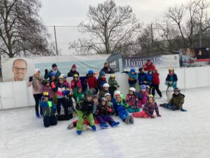 Am 15. Dezember fuhren die Kinder der 1b und der 2b mit ihren Lehrerinnen und einigen Eltern zum Eislaufplatz in Tulln. Das Wetter war schön, da es gerade ein wenig geschneit hatte. Am Eis waren auch einige andere Klassen, und wir konnten sogar einige Kinder, die früher in unserer Schule waren treffen. Alle bemühten sich mit Begeisterung sich auf dem rutschigen Untergrund zu bewegen, und auch die zaghaftesten Sportler hatten schon nach kurzer Zeit Erfolg. Diesmal konnten wir sogar die Eismaschine beobachten und danach auf dem frisch geputzten Eis noch ein paar Runden laufen. Herzlichen Dank allen Eltern und Großeltern die uns begleiteten, Schuhe an- und ausziehen halfen und uns mit warmem Tee und Keksen versorgten!