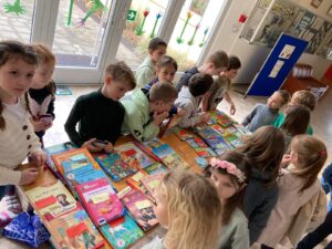 Im Lesemonat März gab es in der 2b allerlei für Bücherwürmer, Leseratten und sonstige Bücher fressende Drachenkinder. Am Anfang des Monats besuchten wir die Bibliothek der Stadt Tulln, wo jeder einen Leseausweisbekam, und auch Bücher gleich ausborgen durfte. Am österreichischen Vorlesetag luden wir uns zwei Elternteile ein, die uns ihr Lieblingskinderbuch, nämlich „Das Städtchen Drumherum “ und „Die Geggis“ vorlasen. Für die ganze Schule gab es dann noch am 30. März einen Bücherflohmarkt, bei dem jeder Bücher verkaufen und kaufen konnte.
