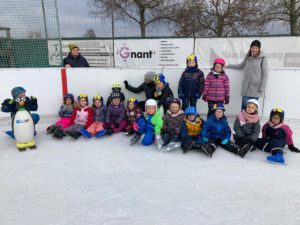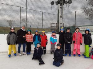 Am 17. Dezember fuhren die Kinder der 1b und der 3b nach Tulln zum Eislaufen. Die meisten Kinder hatten schon Erfahrung und waren im Nu auf der Eisfläche zwischen den anderen auf der Eisfläche verschwunden. Aber auch die restlichen stapften mutig mit ihren Eislaufschuhen drauf los. Es dauerte nicht lange, da waren alle unterwegs. Weil wir alle so brav waren, hatten wir Glück und das Wetter blieb trocken. Mit Pinguinen und Hütchen hatten wir sehr viel Spaß, So viel, dass wir beschlossen im Jänner noch einmal einen Ausflug aufs Eis zu machen.
