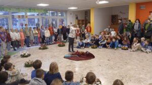 Am Freitag, 29.11.24 fand unsere Adventkranzweihe in der Aula statt. Herr Pfarrer Slonka Pastoralassistentin Elvira Köckeis und unsere Religionslehrerin Jutta Halmetschlager hatten eine stimmungsvolle Andacht vorbereitet. Die Kinder der 2b und 4b luden mit ihrem musikalischen Beitrag dazu ein, den Advent mit allen Sinnen wahrzunehmen. Herr Jürgen vom Canisibus freute sich über viele Sachspenden und Geldspenden unserer Schülerinnen und Schüler.