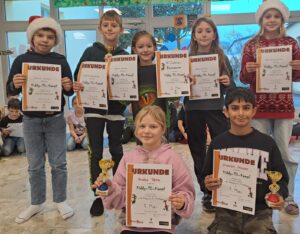 2 Mannschaften unserer Schule waren sehr erfolgreich beim Kiddy 10 – Sportwettkampf. Mit zwei 2. Plätzen bei der Mannschaftswertung, einigen 3. Plätzen bei den „Großen “ und dem 2. Platz bei den „Keinen“ habe wir ganz schön „abgeräumt“. Außerdem durften wir unserer Kollegin Frau Petra Irschik gemeinsam mit unsern Dezember-Geburtstagskinder mit einem kräftigen Happy Birthday herzlich gratulieren.