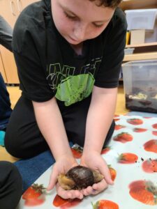 Exotischer Besuch in der Klasse am Welttierschutztag.