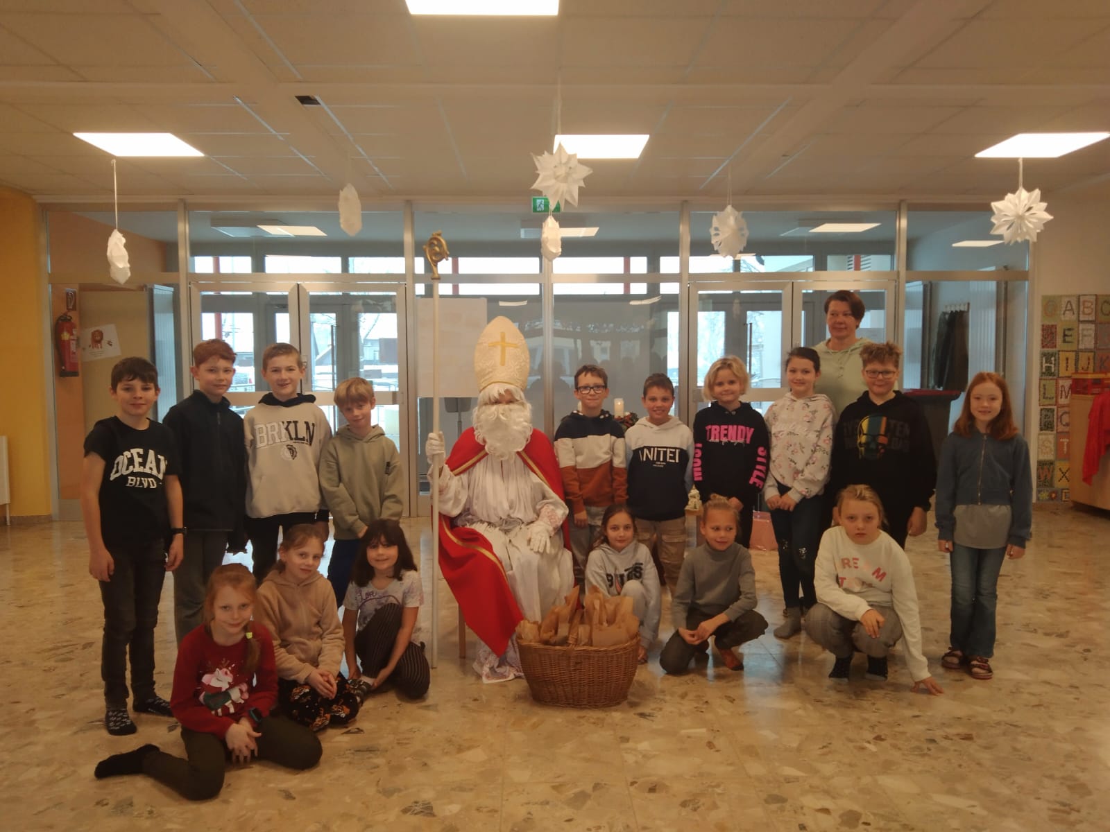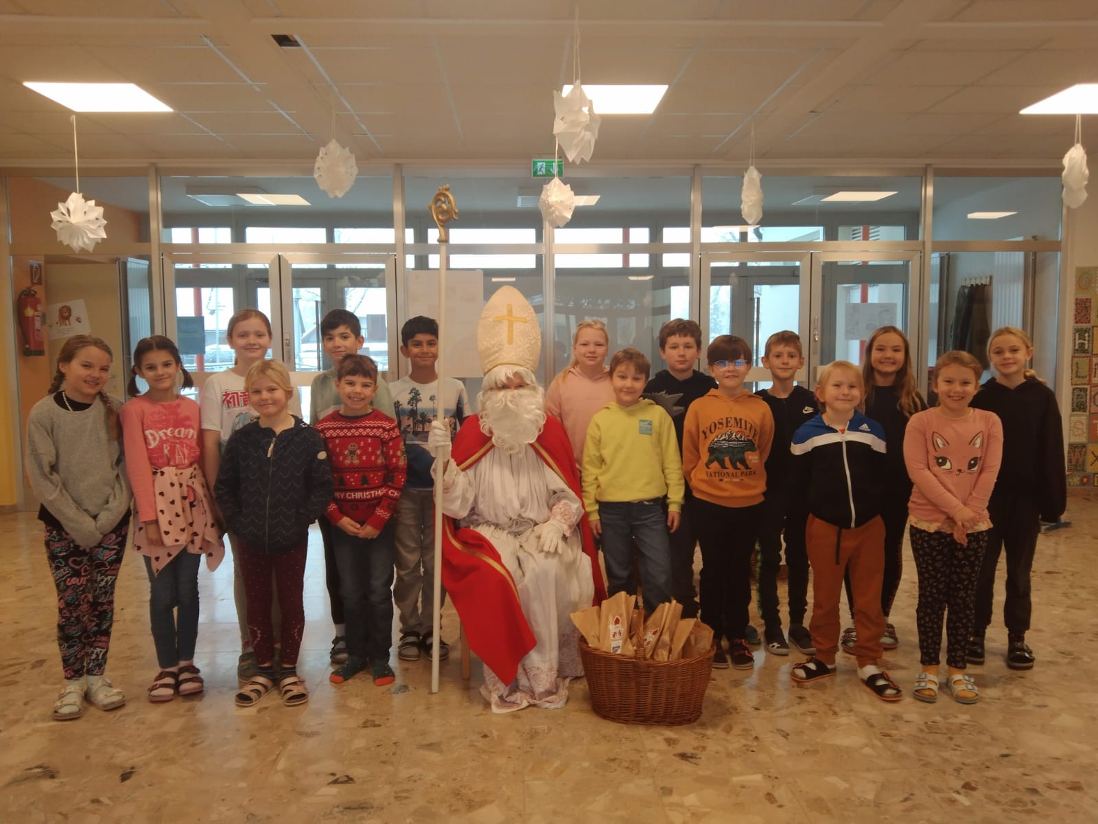 Am Nikolaustag überraschte der Nikolaus alle Kinder der VS Judenau-Baumgarten mit seinem Besuch und mit einem Nikolaussackerl für jedes Kind. Die Schülerinnen und Schüler bedankten sich mit Gedichten und einem Lied.
